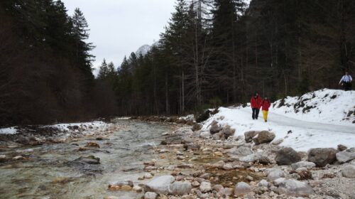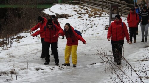Danes je šlo za ravnovesje: naravo, gibanje in učenje. Zjutraj smo se sprehodili po dolini Vrata, po čudoviti poti ob reki. Pokrajina je bila osupljiva, toda pot je bila prekrita z ledom, zato so bili osredotočenost, timsko delo in previdni koraki bistveni – hoja kot vadba v zavedanju.